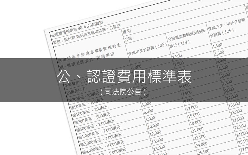司法院公告之公證費用標準表